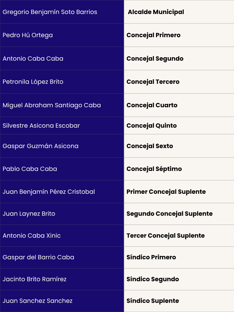 Los miembros del concejo del gobierno municipal 2024-2028 son: